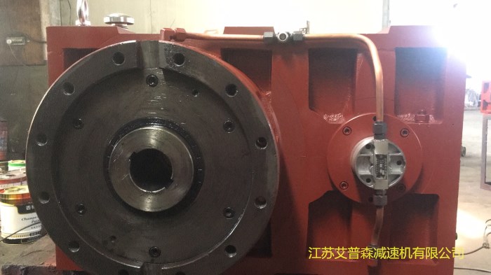 ZLYJ減速機(jī)是為塑料螺桿擠出機(jī)配套設(shè)計(jì)的高精度硬齒面帶推力座的傳動(dòng)部件。產(chǎn)品設(shè)計(jì)采用了ZBJ19009-88所規(guī)定的各項(xiàng)技術(shù)規(guī)范。其特點(diǎn)是齒輪和軸類零件采用了高強(qiáng)度合金鋼材質(zhì)。齒輪經(jīng)滲碳、淬火、磨齒工藝加工。 江蘇艾普森減速機(jī)有限公司ZLYJ系列減速機(jī)齒輪精度為GB10095-88,6級(jí)。齒面硬度HRC54~62。在空心輸入軸前端配置有大規(guī)格推力軸承,承受螺桿工作時(shí)的軸向推力。整機(jī)具有體積小、承載能力高、傳動(dòng)平穩(wěn)、噪聲低、效率高等特點(diǎn)。
