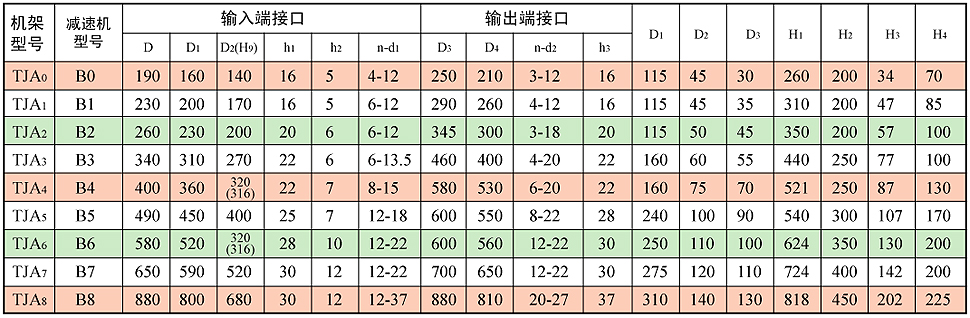 附:TJA型減速機機架外形及安裝尺寸圖